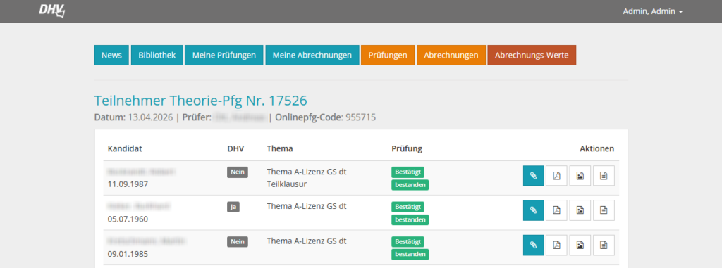 Für einen User mit Berechtigung zum Prüfen für österreichische Scheine wendest du dich an mich (Anatol Mika). Für einen User, der auch die Berechtigung zum Prüfen für deutsche Scheine (Übermittlung an den DHV) hat, wendest du dich direkt an die Kollegen beim DHV oder ebenfalls an mich – ich unterstütze bei der Einrichtung über die deutschen Kollegen. Zur Klarstellung: Ein Prüfungsteilnehmer hat niemals einen Account, sondern betritt die Plattform entweder über den sechsstelligen Prüfungscode (österreichische Scheine) oder über das DHV-Serviceportal (deutsche Scheine).