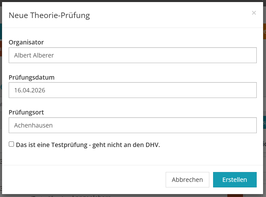 Eine neue Prüfung anlegen